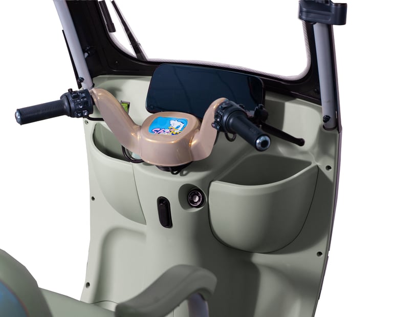 Huge brake rotors with a hydraulic system for the front wheel and rear axle. Parking brakes help you keep your trike secure while not in use.